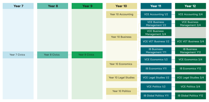 Civics and Commerce provides students with opportunities to develop enterprising behaviours and capabilities that will equip them to face challenges in their lifetime. Through authentic learning opportunities, the Civics and Commerce curriculum fosters enterprising individuals who are able to effectively embrace change; seek innovation; work with others; show initiative, flexibility and leadership; use new technologies; plan, organise and manage risk; and use resources efficiently.